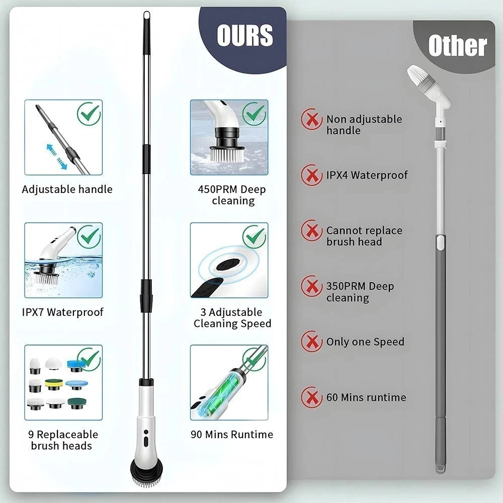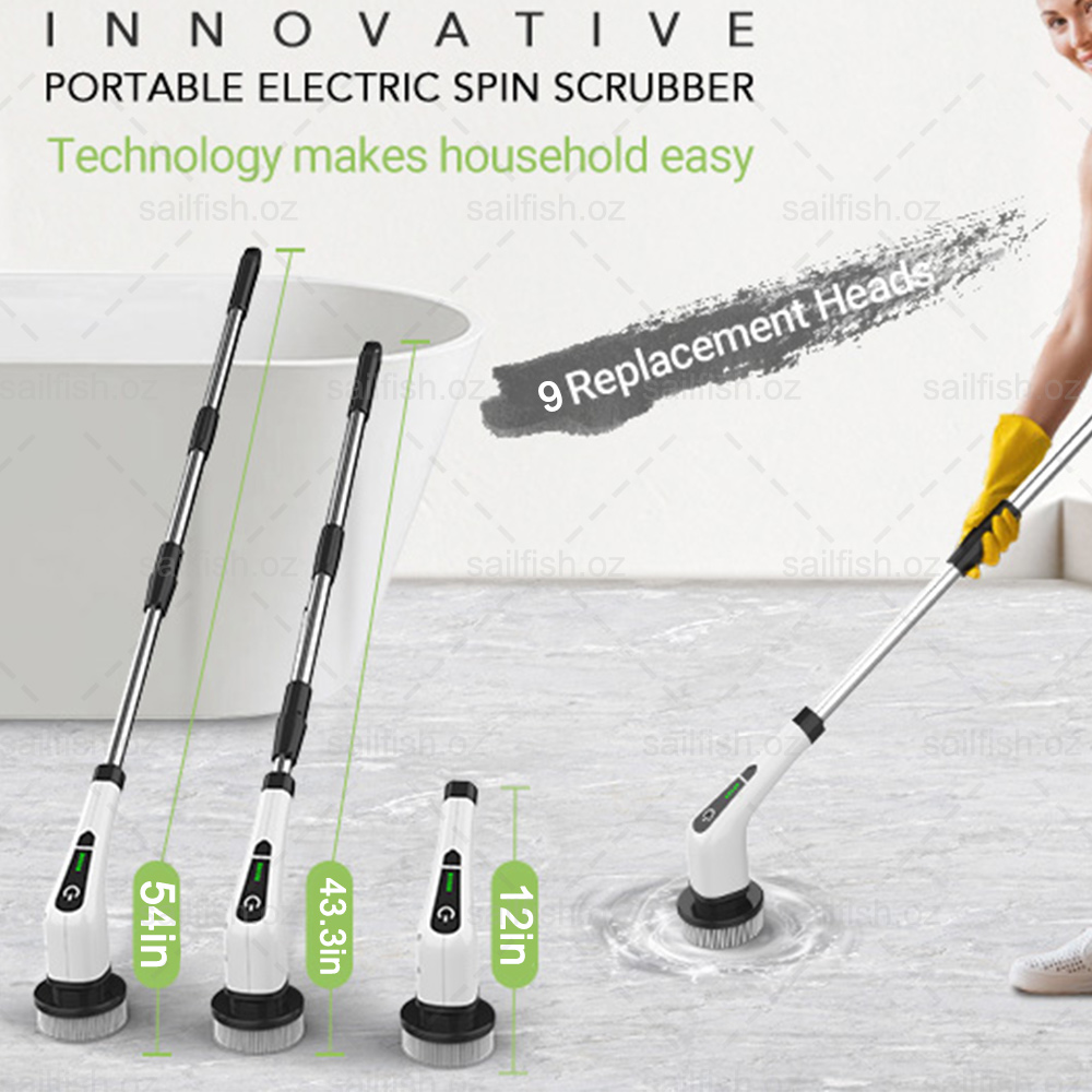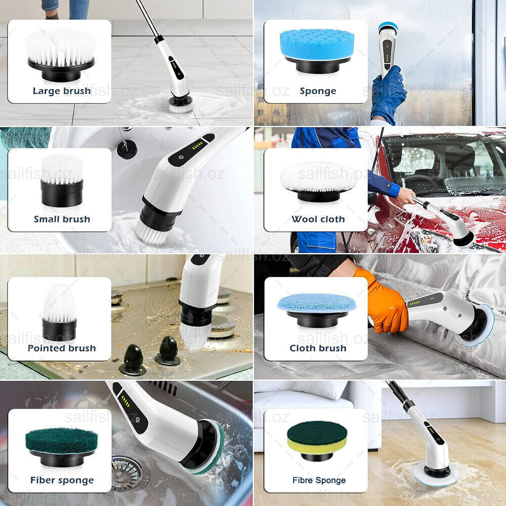 9 in 1 Electric Spin Scrubber Handheld Cleaning Brush Cordless Turbo Scrub Tool